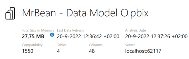 It is also possible to generate a VPAX file in DAX Studio (use Export Metrics). This file has a very limited size and can be shared easily. Making it possible to do a (quick) analysis of a model of which you can’t access the PBIX file.