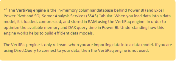 Vertipaq is datatype independent. Therefore it doesn’t matter if a column has a text, bigint or float data type. Vertipaq needs to create a dictionary for each of those columns. The size of this dictionary determines the performance, both in terms of speed and memory space allocated.