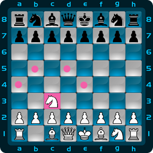 Let’s see how this would work for chess. The first image shows the start of the game, the first state, for the knight we show its actionspace, but of course each piece of the board has its own. Let’s assume the agent decides to move the knight. Leading to the second image, and second state, of the game. Also meaning the knight, and other pieces, have an updated actionspace.