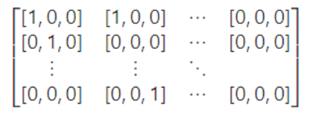 In order to let the neural network understand the image, we transform the game into an array of shape: (game width, game height, 3). This array will then have an array with the length of three for each point in the snake’s map, that will be used to indicate if there is a snake body, snake head or food by using dummy variables. For example, if the pixel is filled with a snake’s body, the array will then be given by [1,0,0] and if there is food placed on the pixel the array will be given by [0, 0, 1]. Then, an example of what the full input array for the convolutional layers could be is given by: