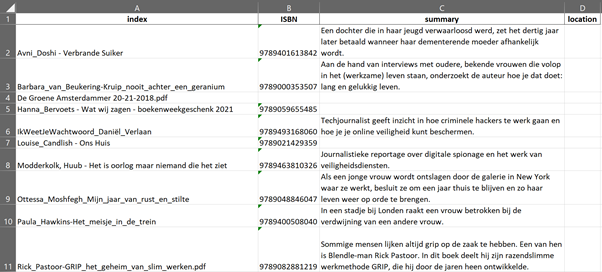 After struggling with this for years, I finally decided it was time to spend some time to solve this problem. Why not create a Python script to list all my books, retrieve their ISBN and finally find their summary on Google Books, ending up with an Excel file containing all this information? And yes, this is as simple as it sounds! I’ve used the brilliantly simple isbntools package and combined this with the urllib package to get the summary from Google Books. Easy does it! And the result looks like this: