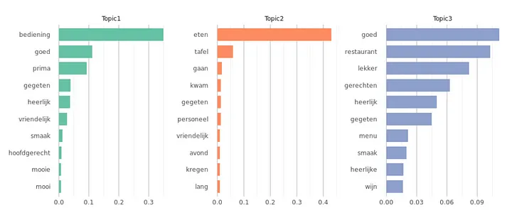Earlier, we’ve specified our goal: To predict what restaurants have a Michelin star. In one of our next blogs, we therefore use the distribution over topics in the review texts to predict whether the review is a Michelin review or not. We also aggregate those predictions over all reviews a restaurant has had to evaluate to what extent we are able to predict Michelin stars. Aside from this, we will use other techniques (word2vec, GloVe, BERT) to summarize the review texts into features we can use to predict Michelin stars and we’ll show what approach works best. We will start by introducing word embedding techniques (word2vec, GloVe) in our next blog and show you how to transform our review texts into embeddings and how to interpret and visualize those.